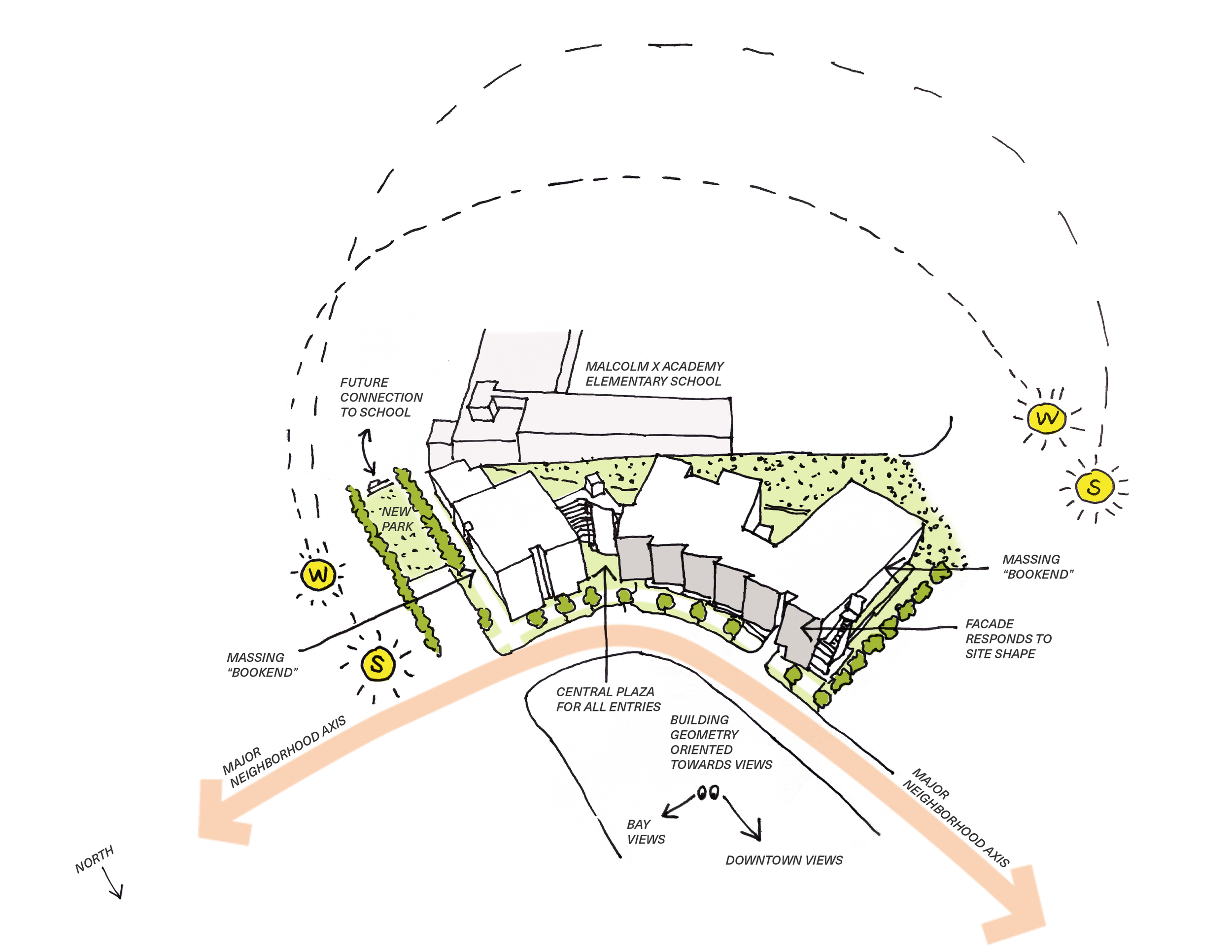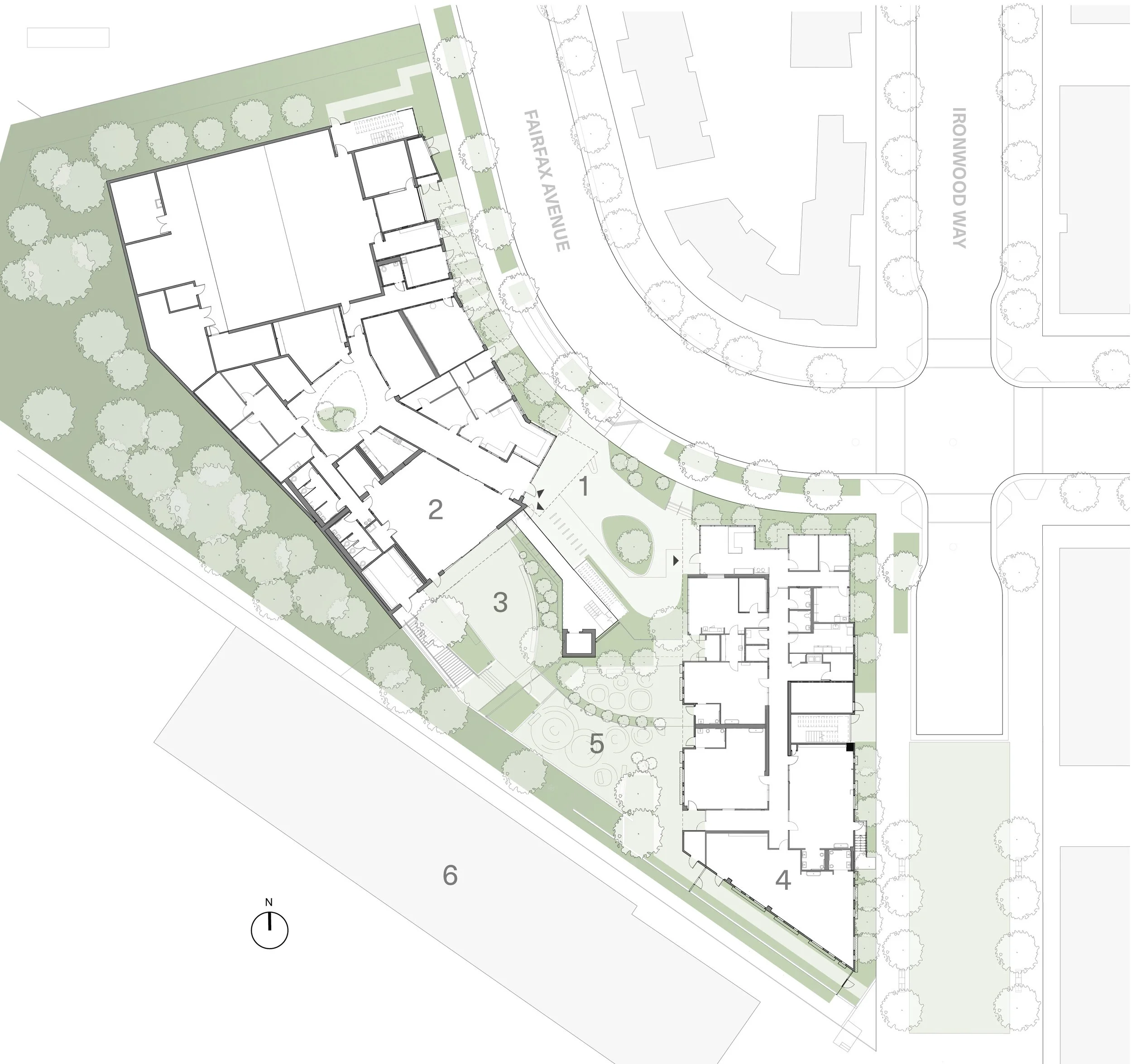 Block 10 building form responds to the curve of Fairfax Avenue.
