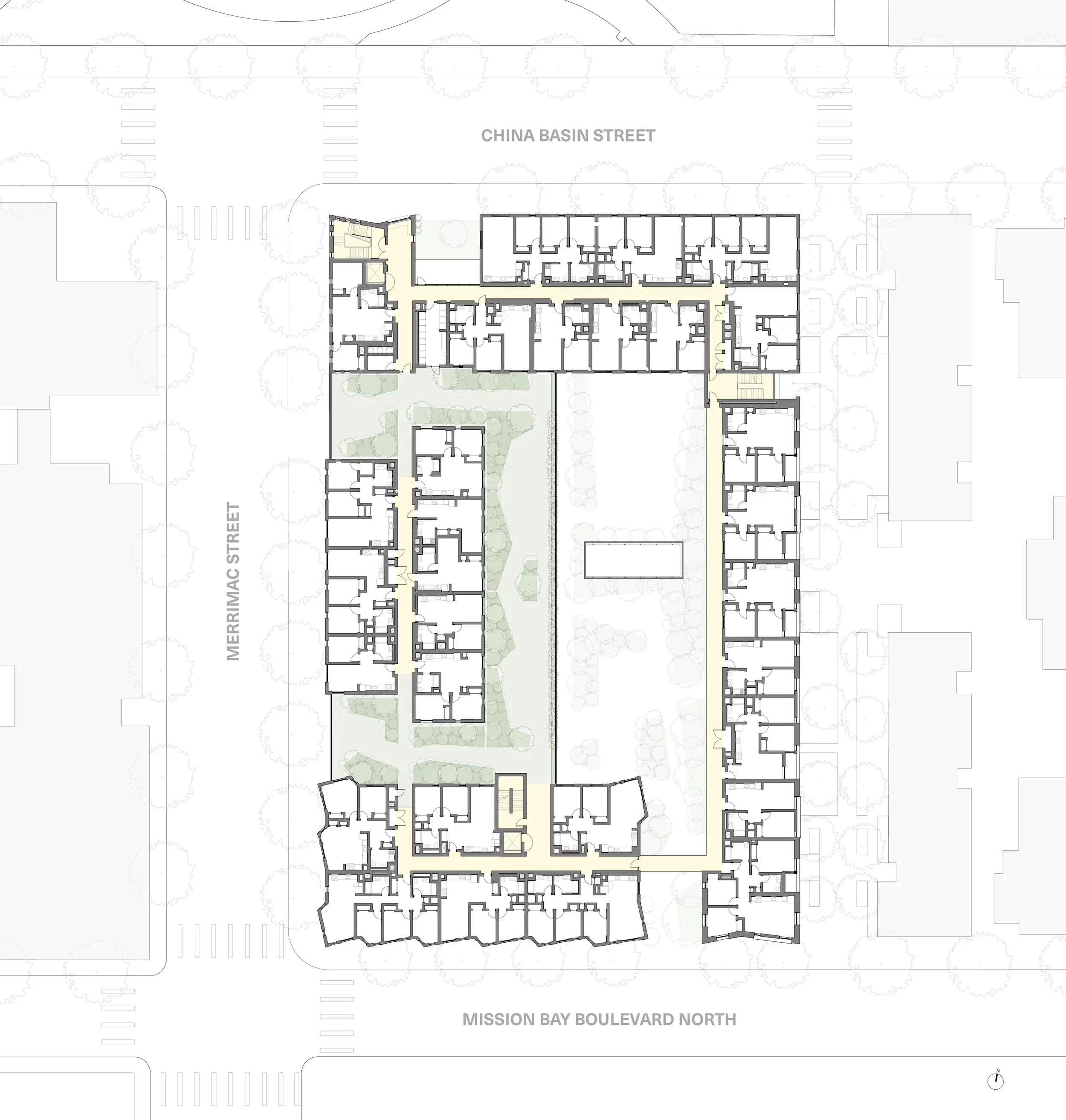 For the Sister Lillian Murphy Community, we were approached by Mercy Housing to design a multi-family residential building in San Francisco’s Mission Bay neighborhood. The project is distinct in its pursuits toward combatting homelessness and family displacement due to the rising cost of housing, and enhancing economic and environmental sustainability. Today, the Community serves 430 low-income residents as a community-focused development that spans seven stories and 152 units. In addition to its significant energy efficiency features, the design stands out through the incorporation of exemplary services available to both residents and the wider neighborhood, including a child development center, music school, and flexible space for gatherings.