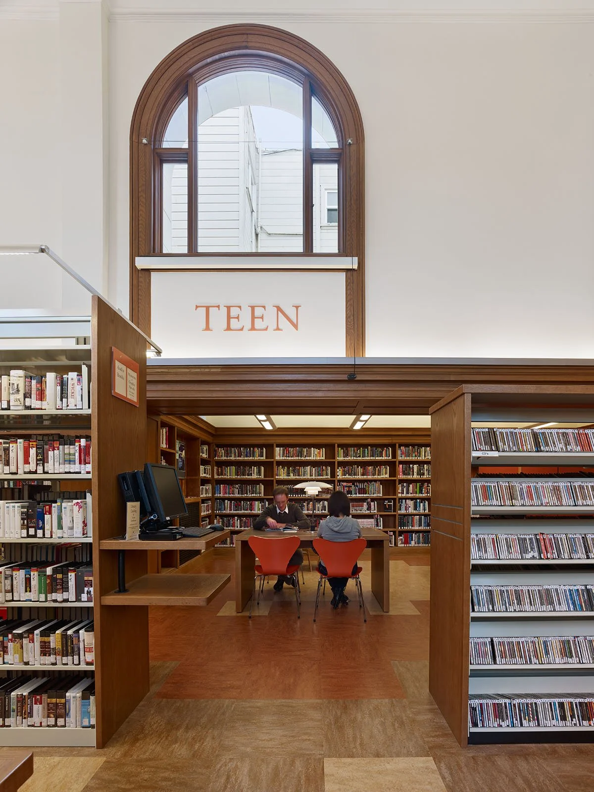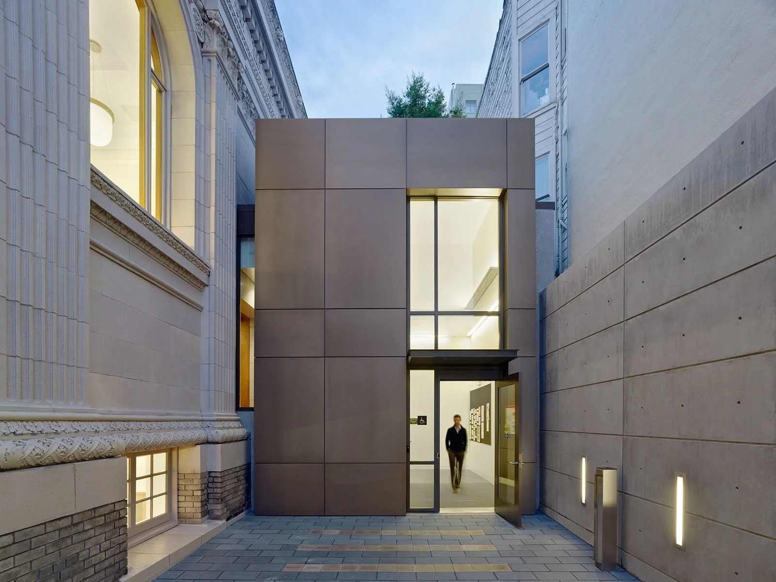 As part of the Branch Library Improvement Program, PTA completed a full renovation of the library including seismic, life safety, MEP, and accessibility upgrades, converting the historic jewel into a modern, technology-rich, LEED Gold-certified public resource. A small, contemporary addition incorporates a stair and new elevator to provide access for all. Sheathed in metal panels similar in color and warmth to the library’s original terra cotta, the new building is situated in a small side courtyard and designed to complement the historic building while remaining visually distinct.