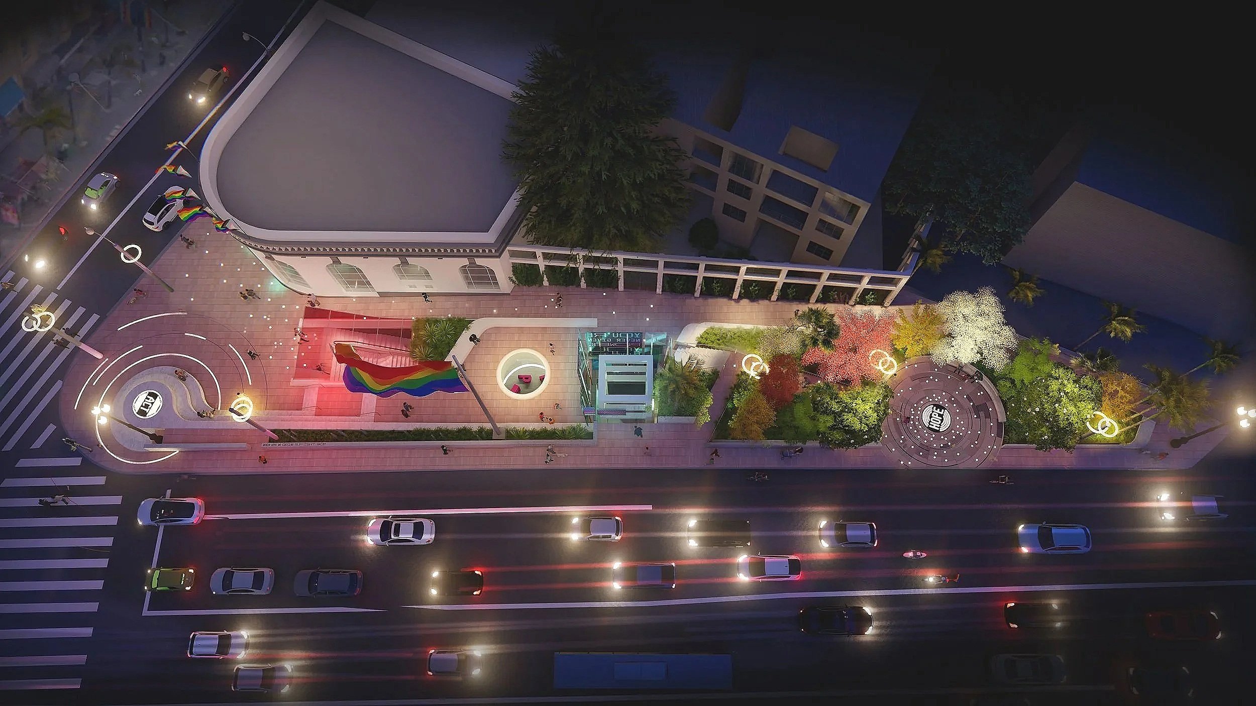 Our team—with PTA as Architect of Record in partnership with Mar Jang Architects, SWA, The Friends of Harvey Milk Plaza, SFMTA, and San Francisco Public Works—developed a vision for the new plaza that builds on the neighborhood’s identity and on the legacy of Harvey Milk: a vibrant public square anchored by a pedestal for gatherings, speeches, and calls for action. A digital monument contextualizes these formal gestures, telling the story of Harvey Milk and the history of the Castro; its panels of various sizes reference historic and contemporary protest signs. An outdoor grove provides a place for quiet contemplation, while an indoor gallery, daylit by an oculus, hosts both permanent and rotating art exhibits. Curated in partnership with local organizations, these exhibits will carry forward the plaza’s mission to amplify community voices.