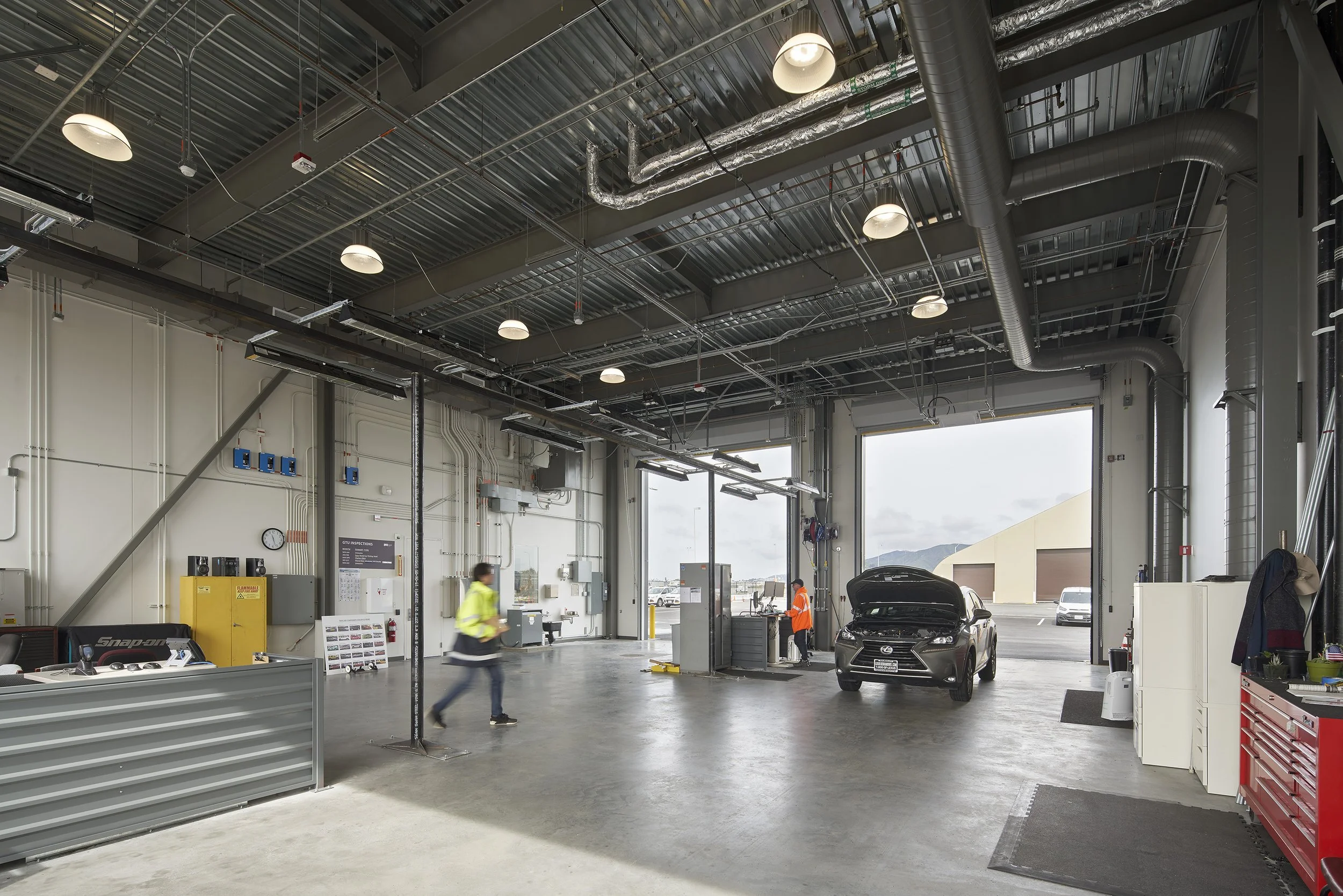 The relocation & rebuild of the Ground Transportation Unit (GTU) was part of a series of projects that were pivotal in enabling the monumental expansion of Harvey Milk Terminal 1 at the San Francisco International Airport (SFO). The GTU employs staff who perform vehicle safety inspections and annually register commercial vehicles operating at SFO, while a new radio shop provides maintenance and repairs to communications equipment for a broad range of SFO departments.