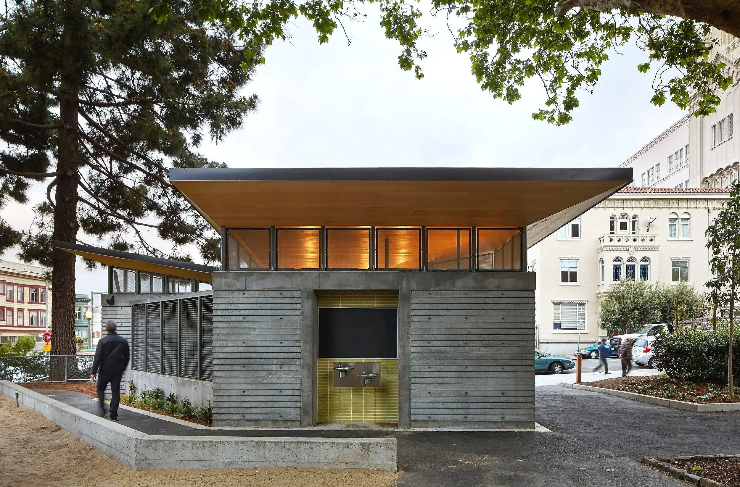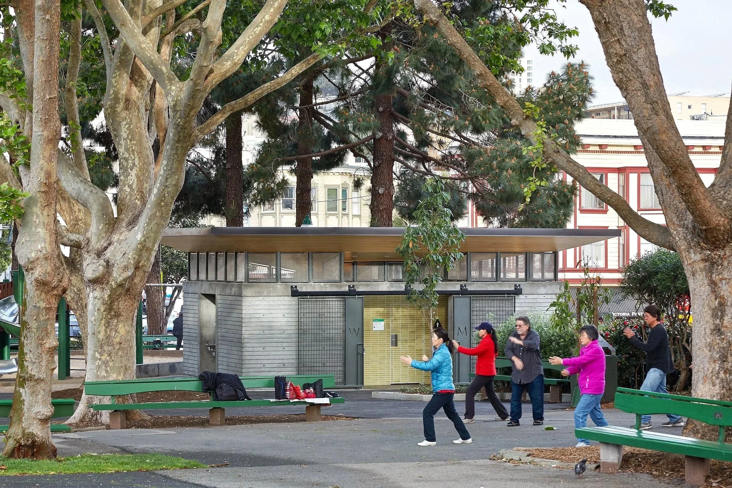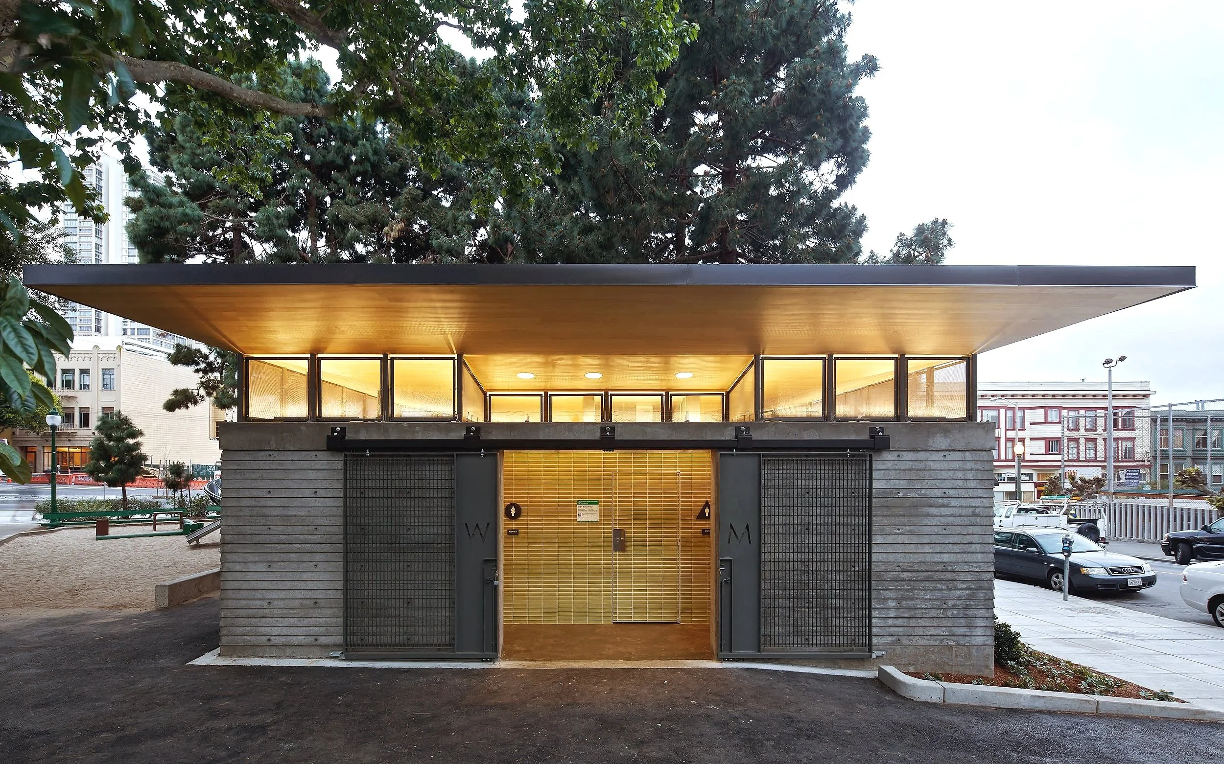 Sited among large trees in the northwest corner of historic Washington Square, this new restroom building provides easy and visible access to improved park amenities.