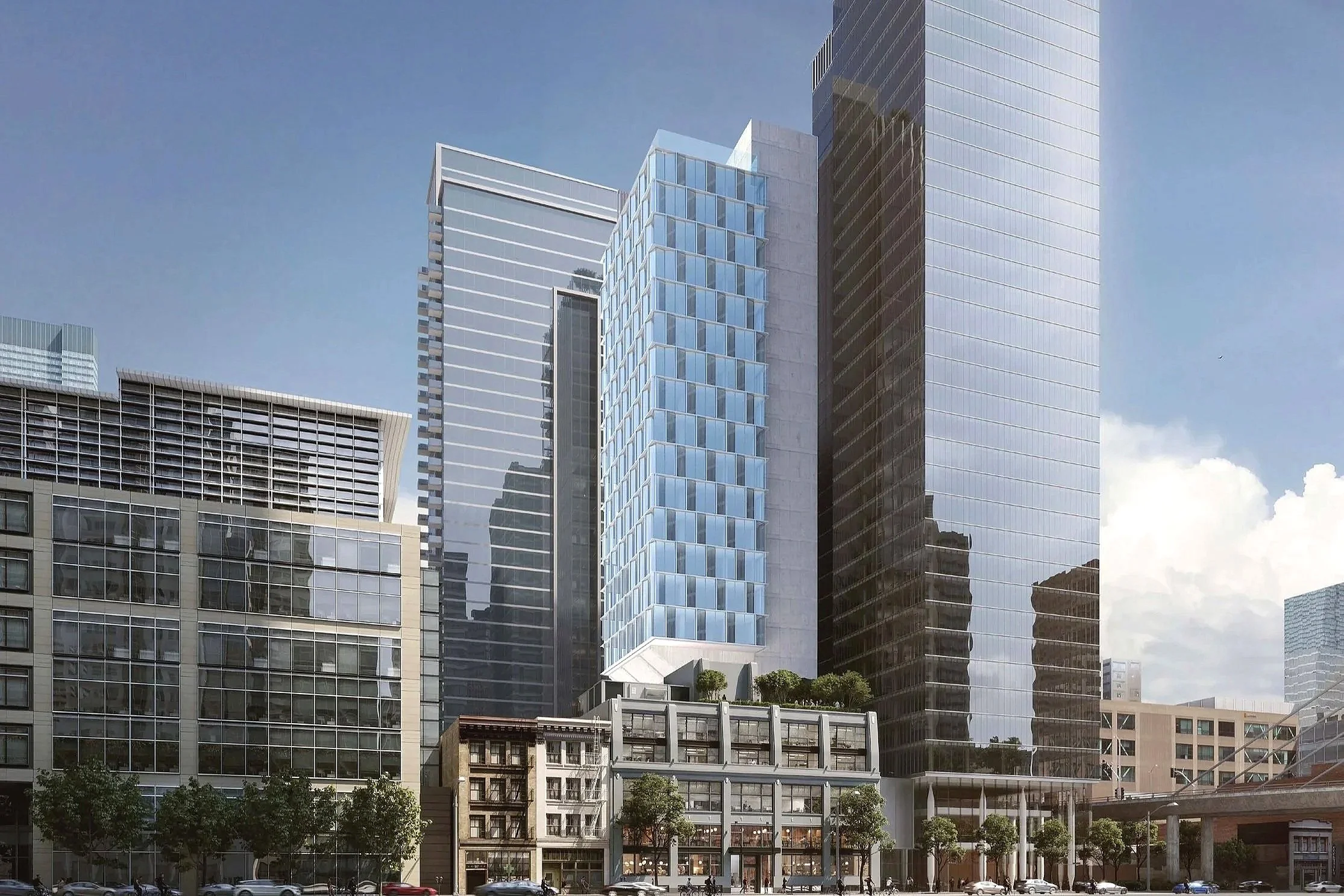 In the Transbay District of San Francisco, PTA designed a 21-story addition to a four-story heavy timber office building.