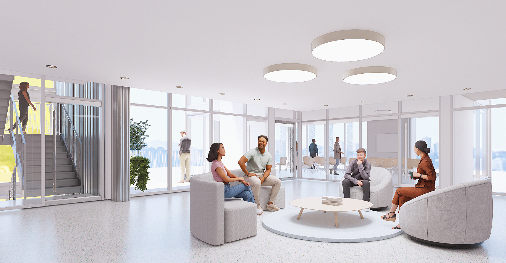Designed in association with Gensler, the architecture emphasizes communal spaces, transparency, and connection to the picturesque landscape. Extensive floor-to-ceiling glazing creates a degree of transparency atypical for a large treatment facility. On the ground floor, semi-translucent colored panels take an extroverted stance to the street while casting vibrant shadows within the lobby. The project is targeting LEED Gold certification and is expected to complete in 2028.