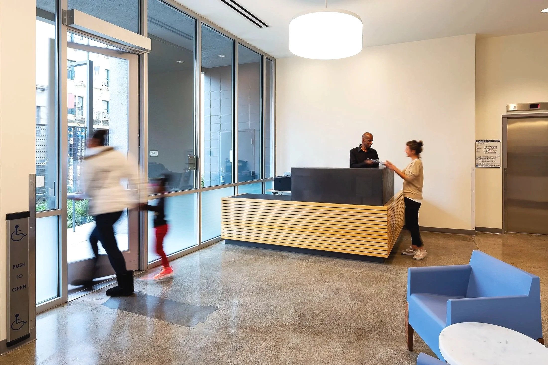 Over the course of five years, PTA worked with local developers on the occupied renovation of over 450 units of affordable housing for seniors and disabled persons, undertaking seismic and MEP upgrades to reduce operational expenses, improve building resilience, and improve indoor air quality. We also emphasized providing quality finishes, lighting, and spatial layouts. The design also adds new spaces to support building operations and tenant services.