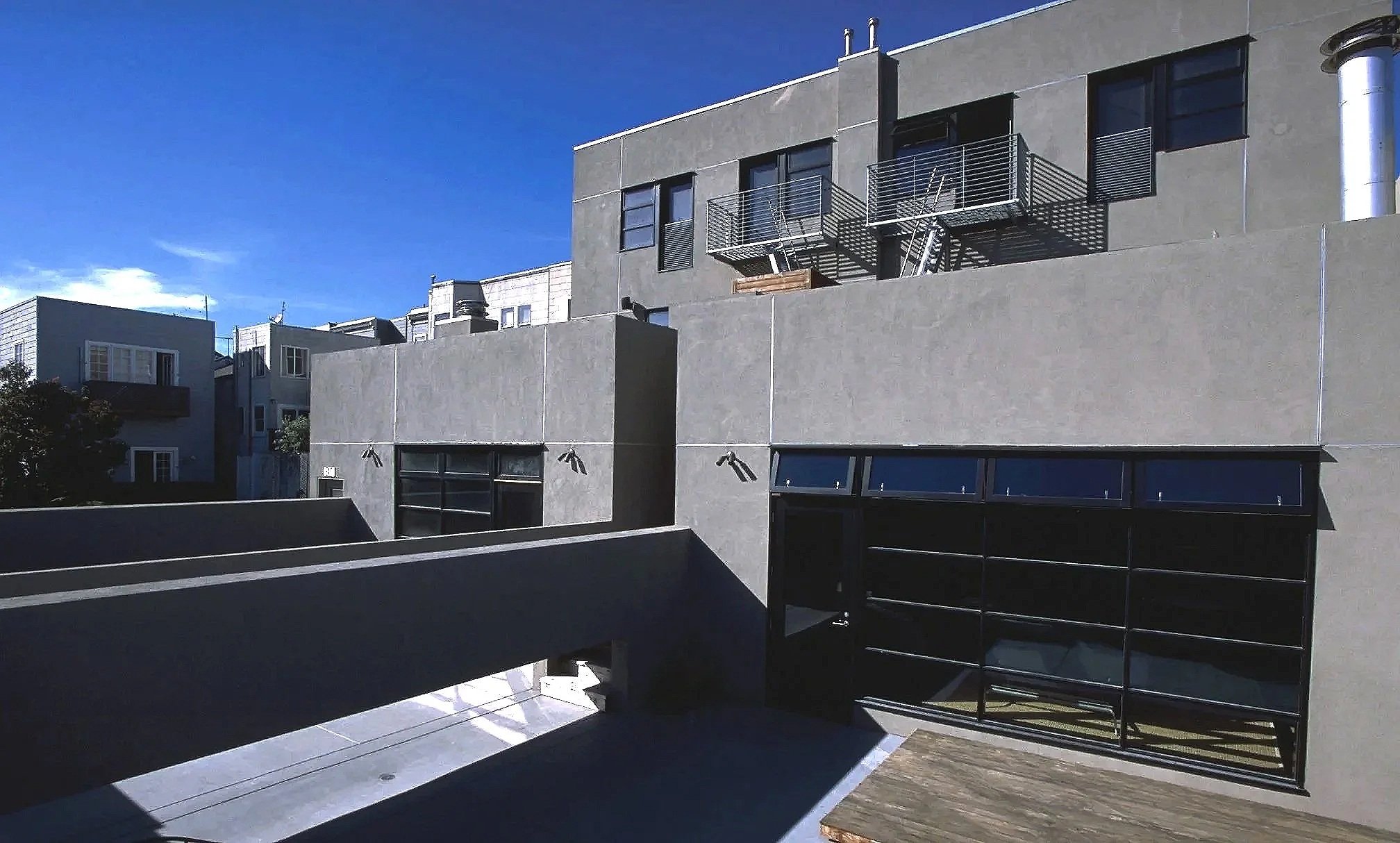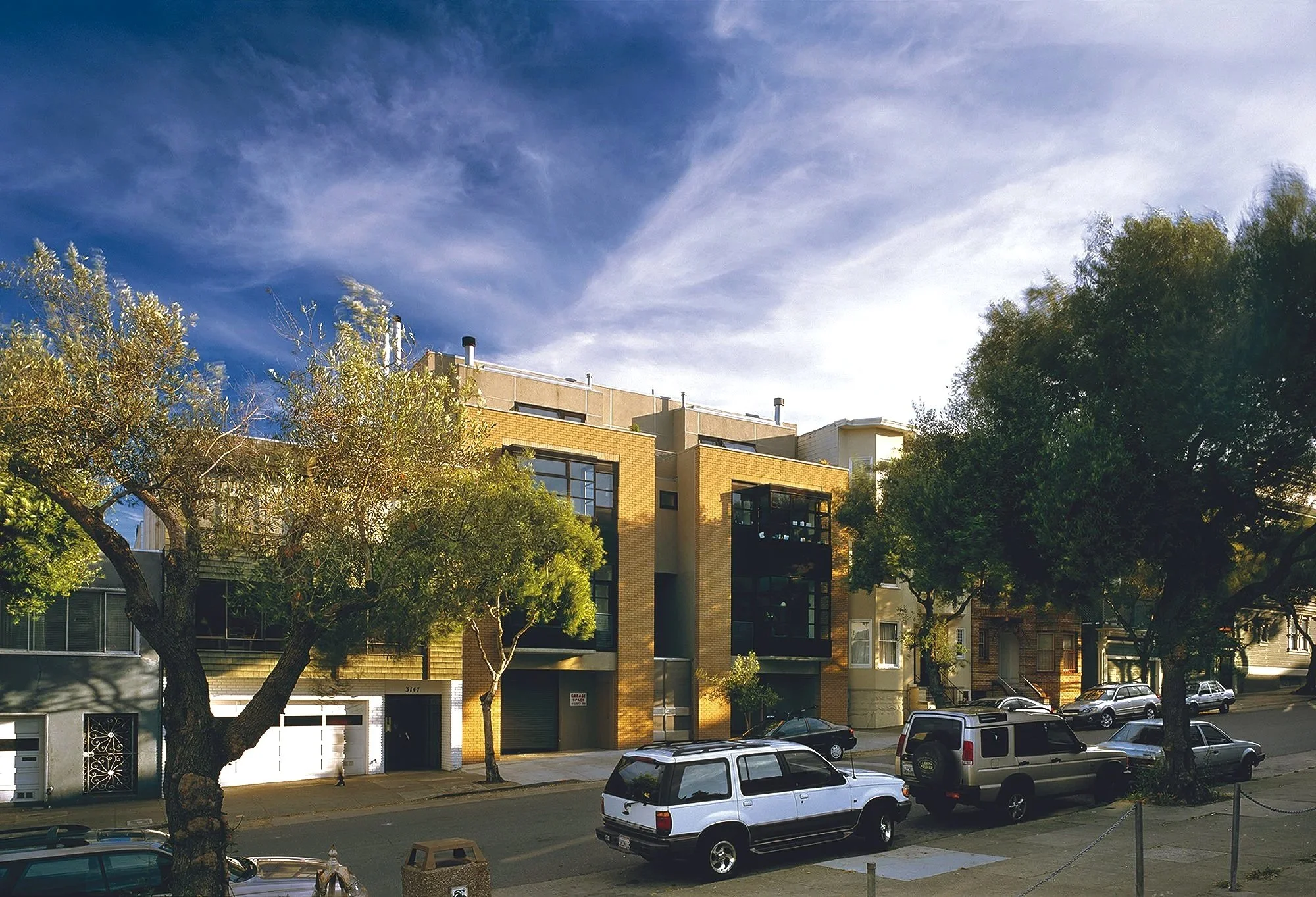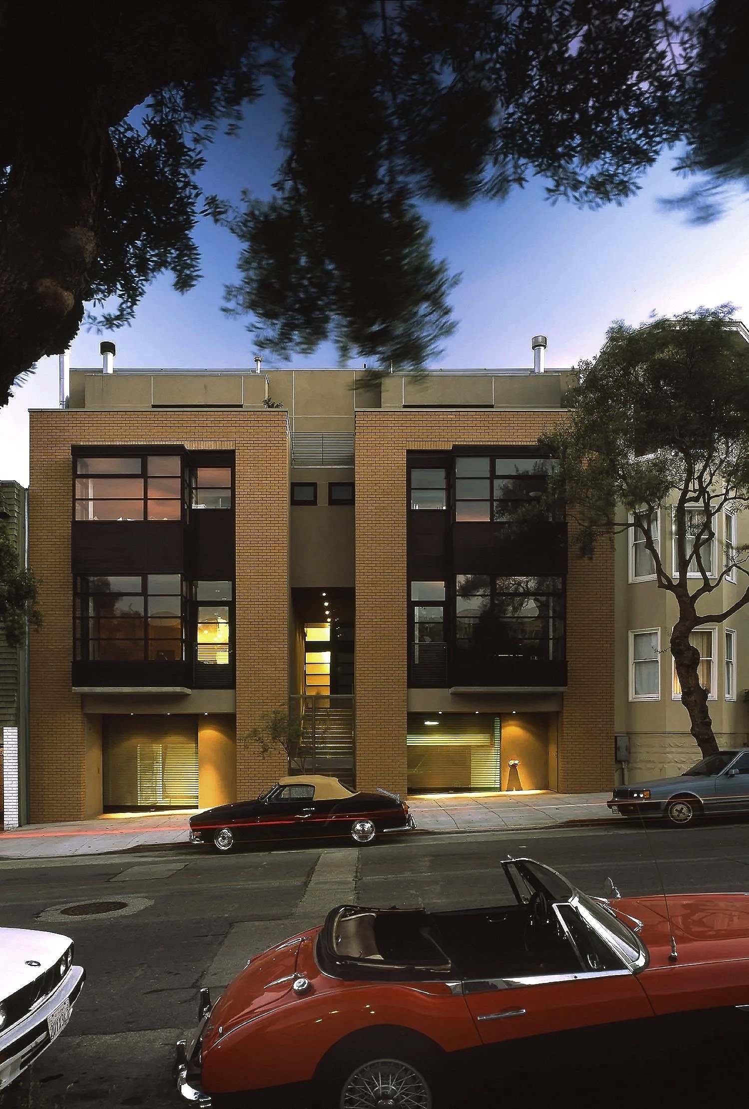 Set around an entry courtyard and built over an existing 40-car garage, seismically upgraded by PTA, four new townhouses make for a simple yet impactful addition to the neighborhood.